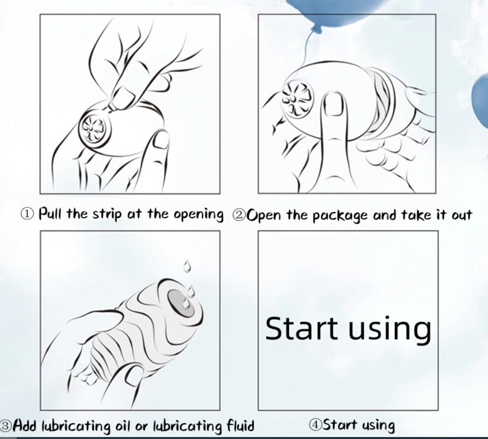 Применение: Чтобы использовать, просто снимите обертку, достаньте яйцо и натяните на пенис, как будто это презерватив. В комплекте так же есть пакет с гелем смазкой.