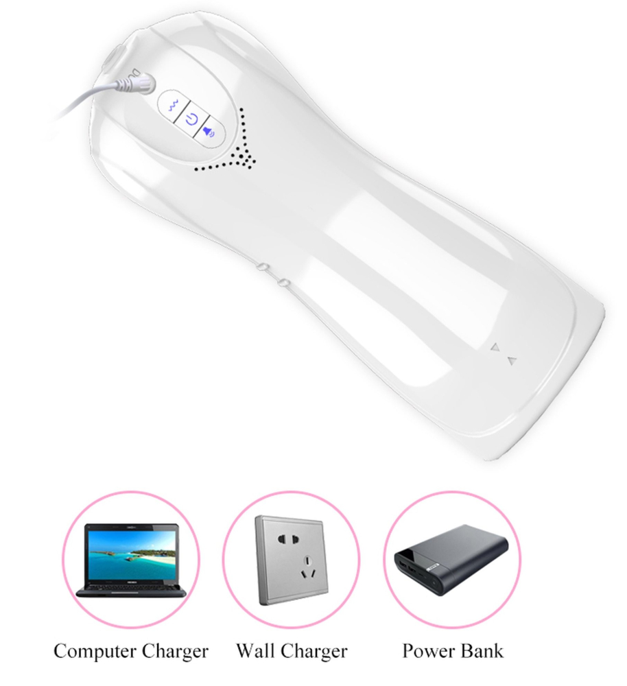 1) Коротко нажмите (нижнюю) кнопку, чтобы включить мастурбатор. Он вибрирует в течение 1 секунды и переходит в режим ожидания. Еще одно короткое нажатие активирует первый режим вибрации. Каждое короткое нажатие изменяет функцию массажера, используя 7 режимов вибрации.