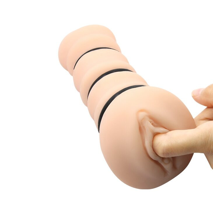 Мастурбатор-вагина телесного цвета имеет внутренний рельеф для интенсивной стимуляции.