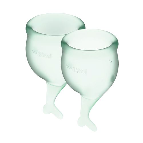 Почувствуй себя в полной безопасности даже в самые сложные дни! Предлагаем купить набор менструальных чаш Satisfyer Feel secure Menstrual Cup (light green), которые обеспечат полную защиту от протеканий, чувство комфорта и защищенности на протяжении целых 12 часов, в том числе — и во время тренировок и плавания! Безопасный и мягкий медицинский силикон, удобная форма с надежным раздвоенным хвостиком для простого извлечения плюс возможность многоразового использования делают чашу практически идеальным средством личной гигиены. Две чаши в наборе, на 15 мл и 20 мл, плюс мешочек для хранения.