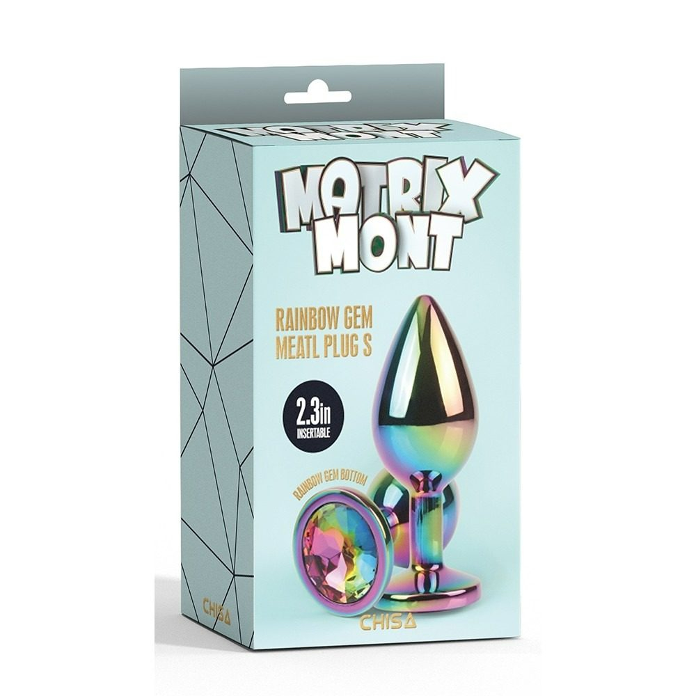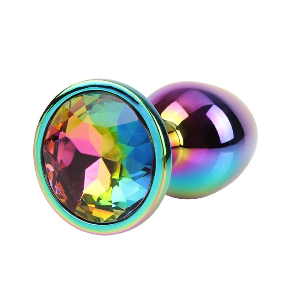 Анальная пробка с кристаллом S Rainbow Gem Chisa, металлическая, разноцветная, 7 х 2.7 см