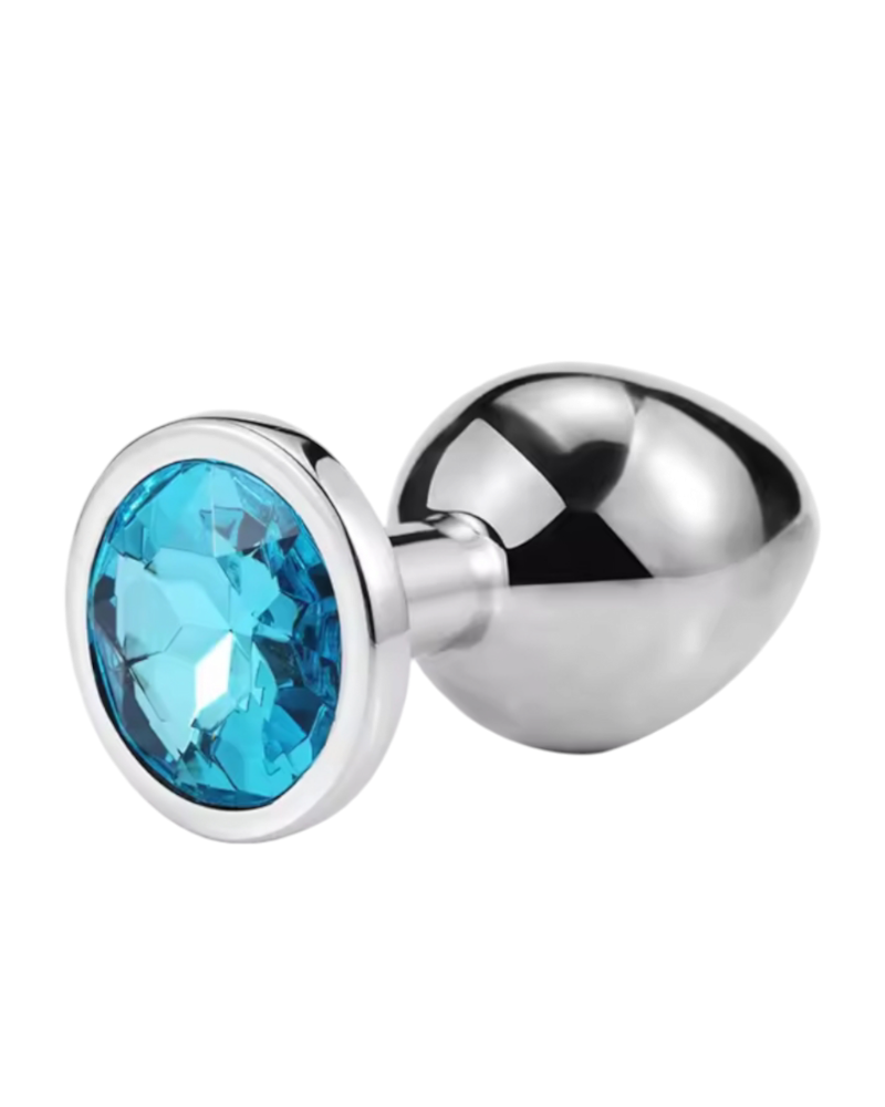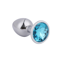 Металлическая анальная пробка серебристая с голубым камушком Sexy desires размер М