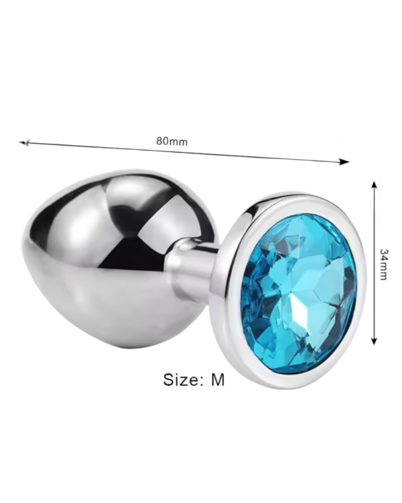 Характеристики Металлическая анальная пробка серебристая с голубым камушком Sexy desires размер М