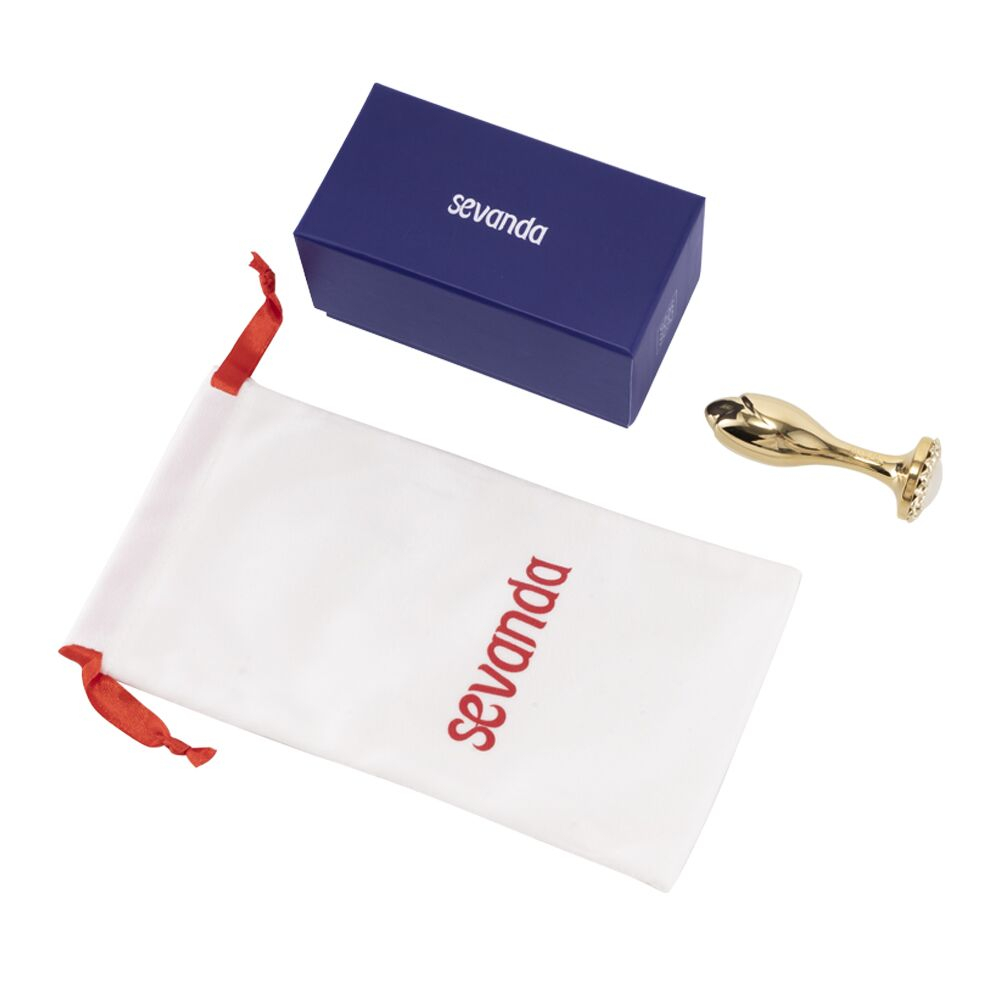 Металлическая анальная пробка в форме розы золотистого цвета с камушком Lockink Sevanda