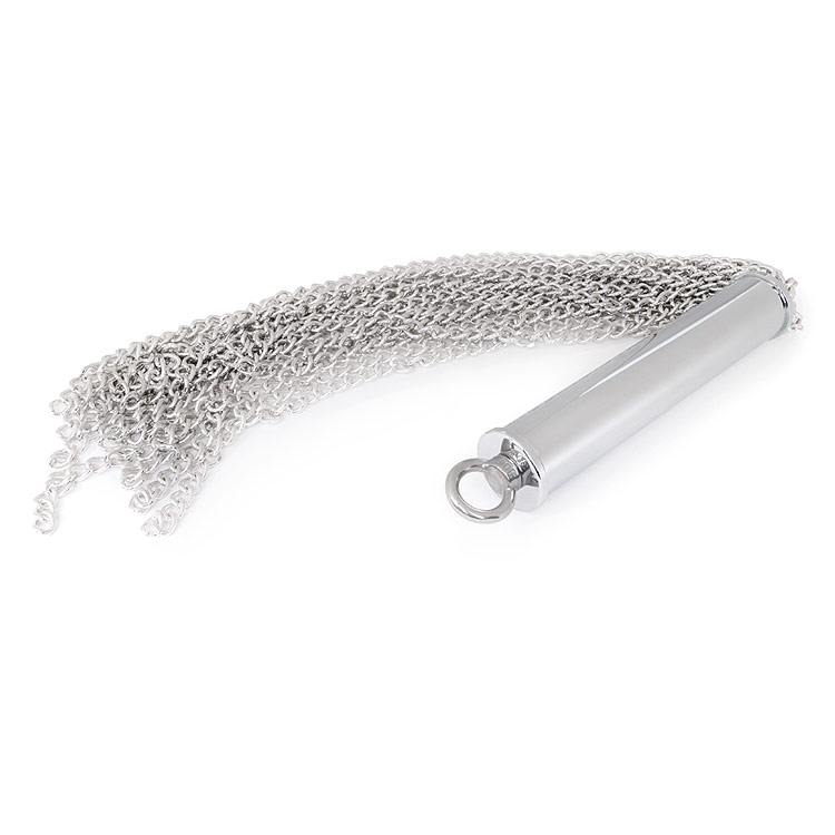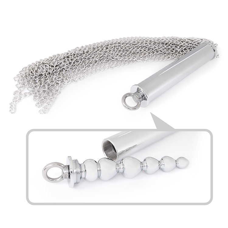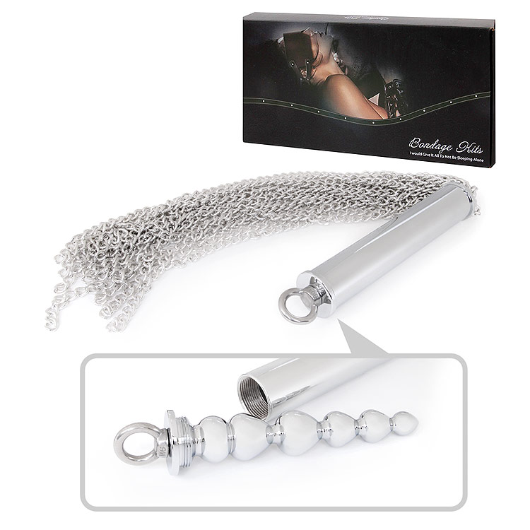 Оригинальный БДСМ-аксессуар – металлическая плеть-флогер + металлическая втулка в форме «ёлочки».