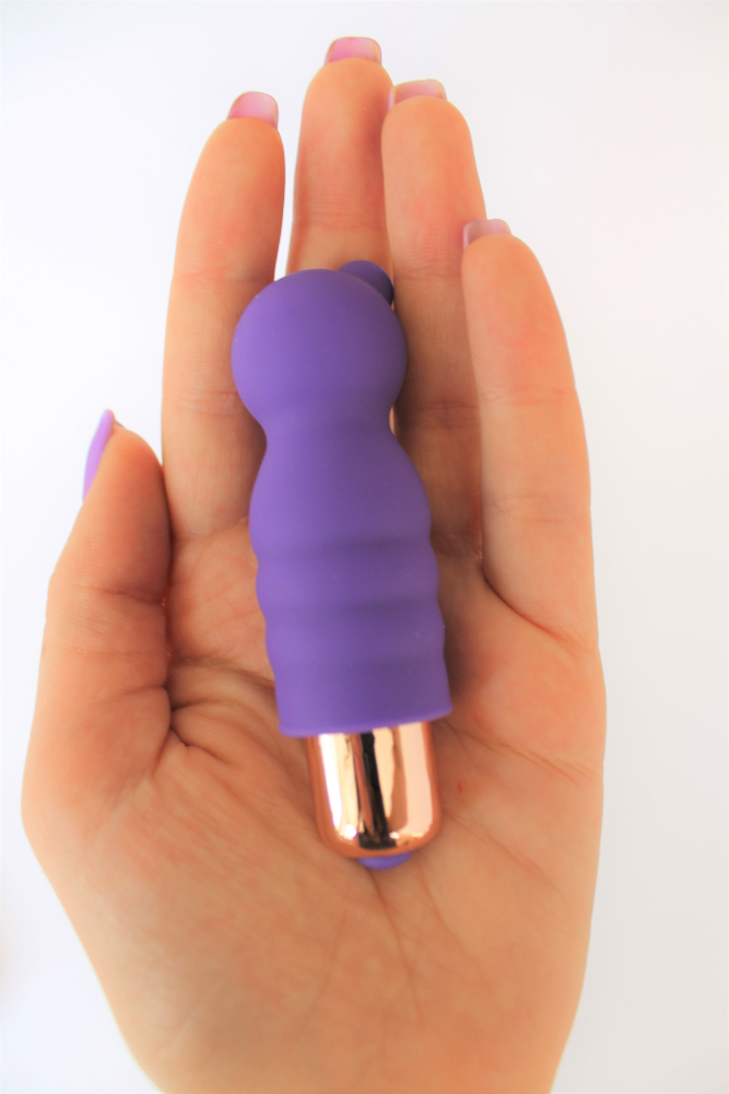 Характеристики Мини вибратор ребристый с выпуклостями силиконовый для клитора SWEET TOYS фиолетовый L 6,5 см D 2,5 см со съемной вибропулей