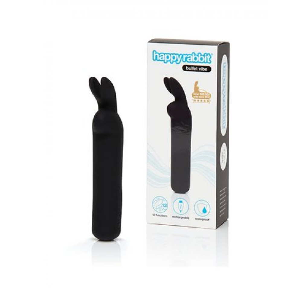 Вибропуля в виде зайчика, силиконовая, черного цвета, 11 см