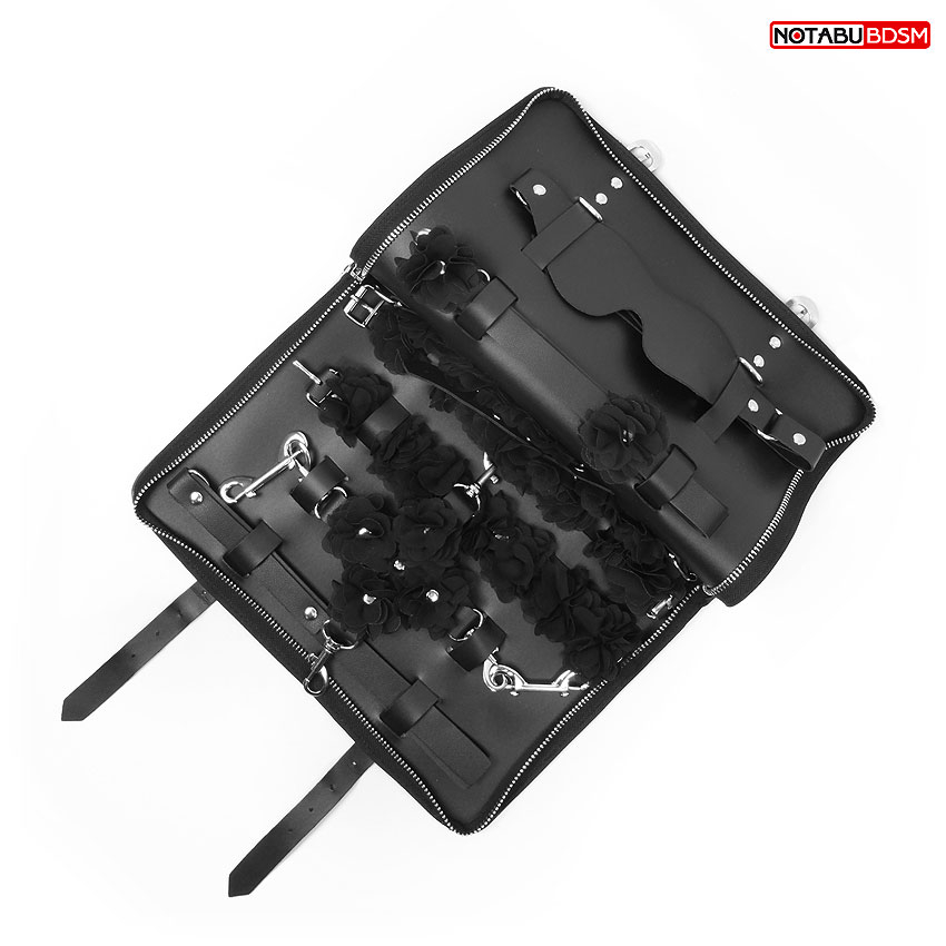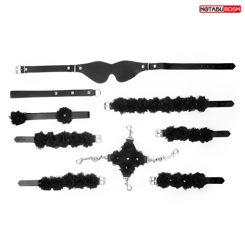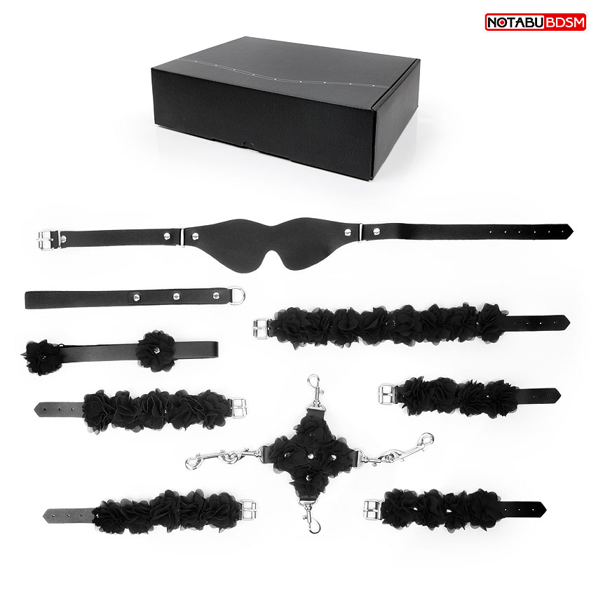 Набор аксессуаров для БДСМ-игр маска,фиксатор,ошейник с поводком,наручники,оковы,шлёпалка Notabu черный