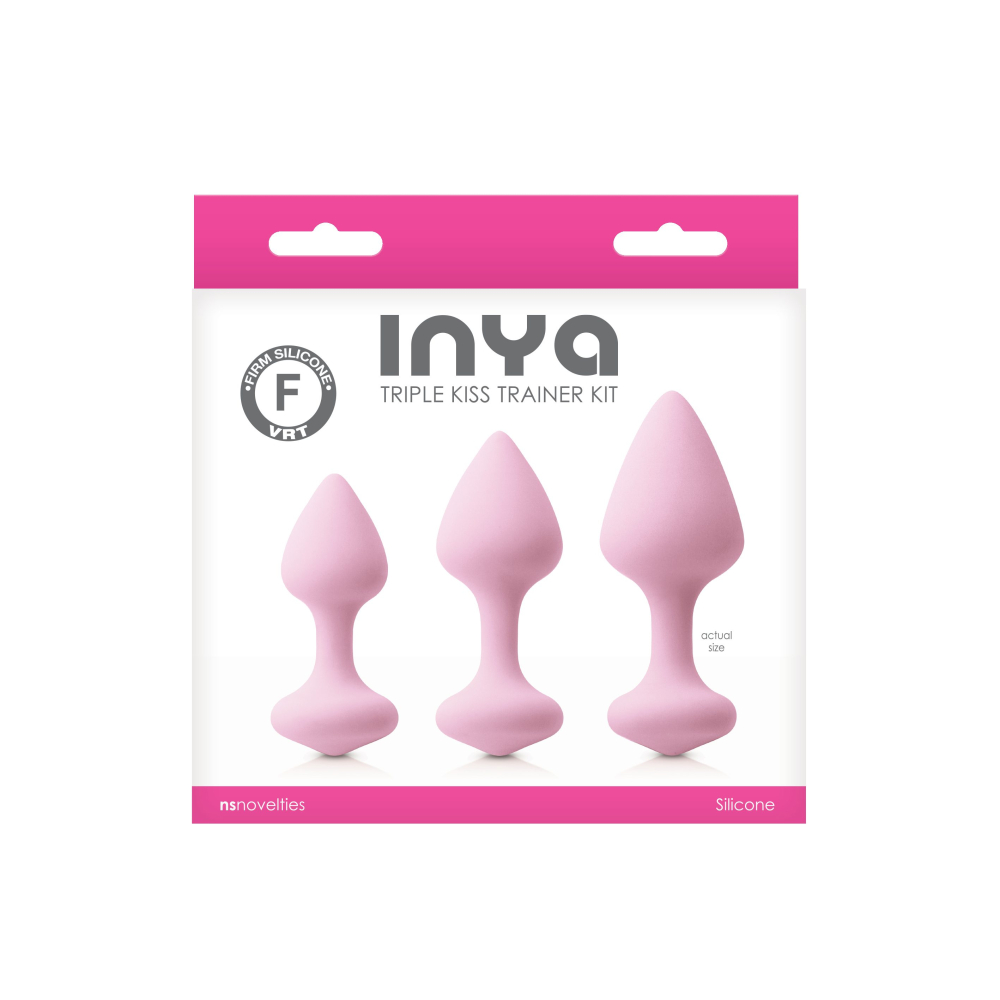 Inya Triple Kiss Trainer Kit включает в себя набор из трех твердых, шелковистых гладких силиконовых пробок, сужающихся для легкого введения и удобной посадки.