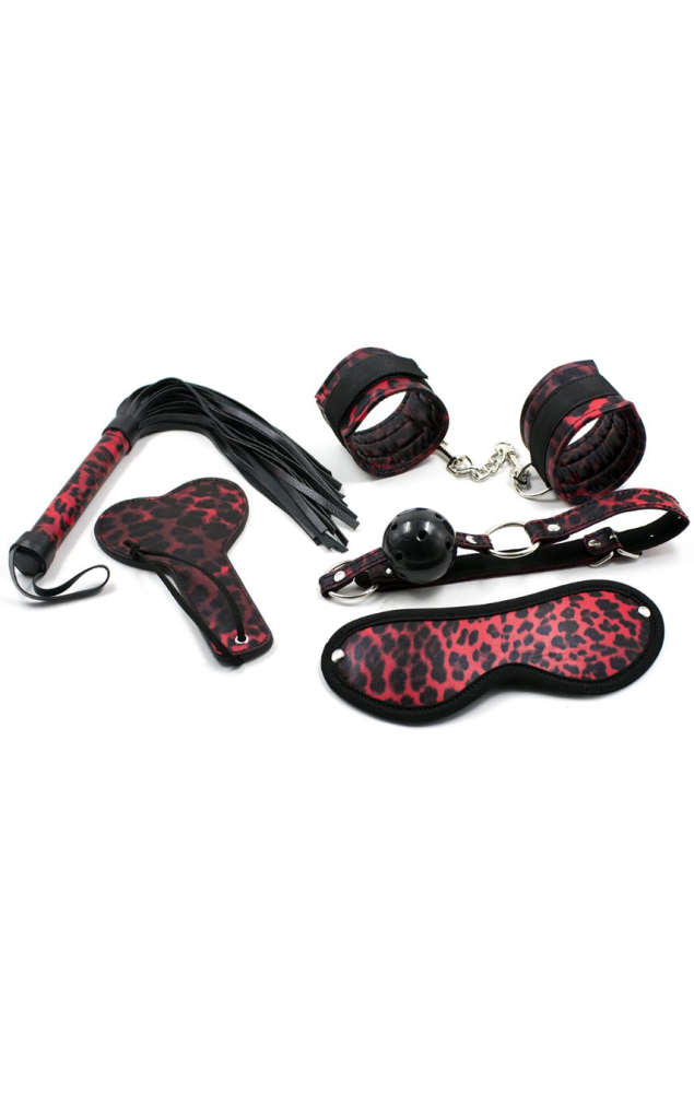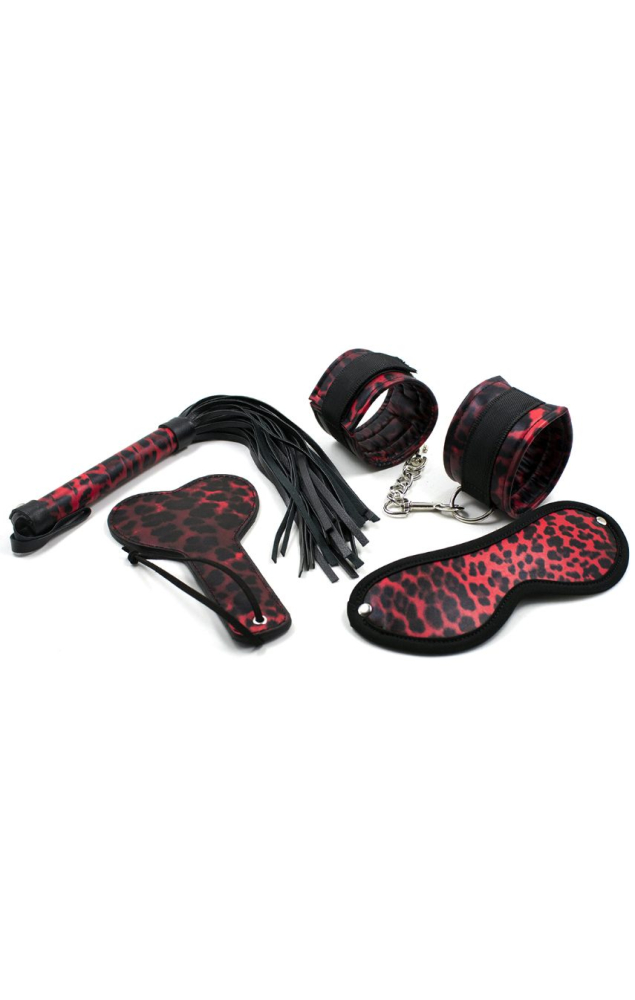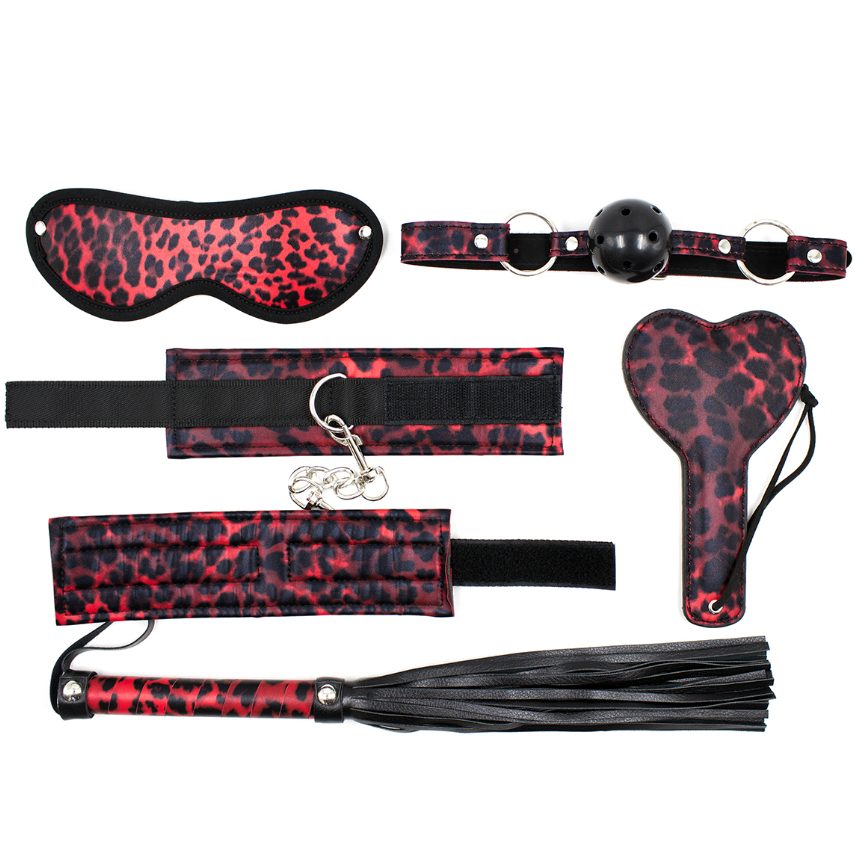 Набор БДСМ красно леопардового цвета Hision Beautiful Fixation 5 предметов