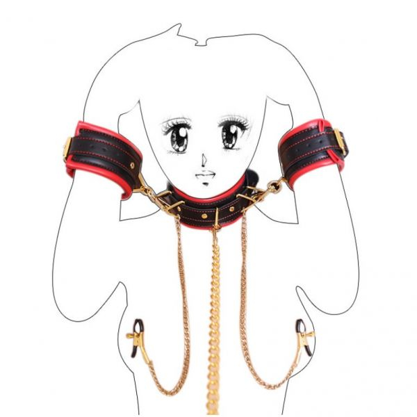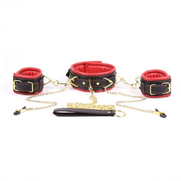 Набор для БДСМ черно-красный(наручники,ошейник,зажимы для сосков)