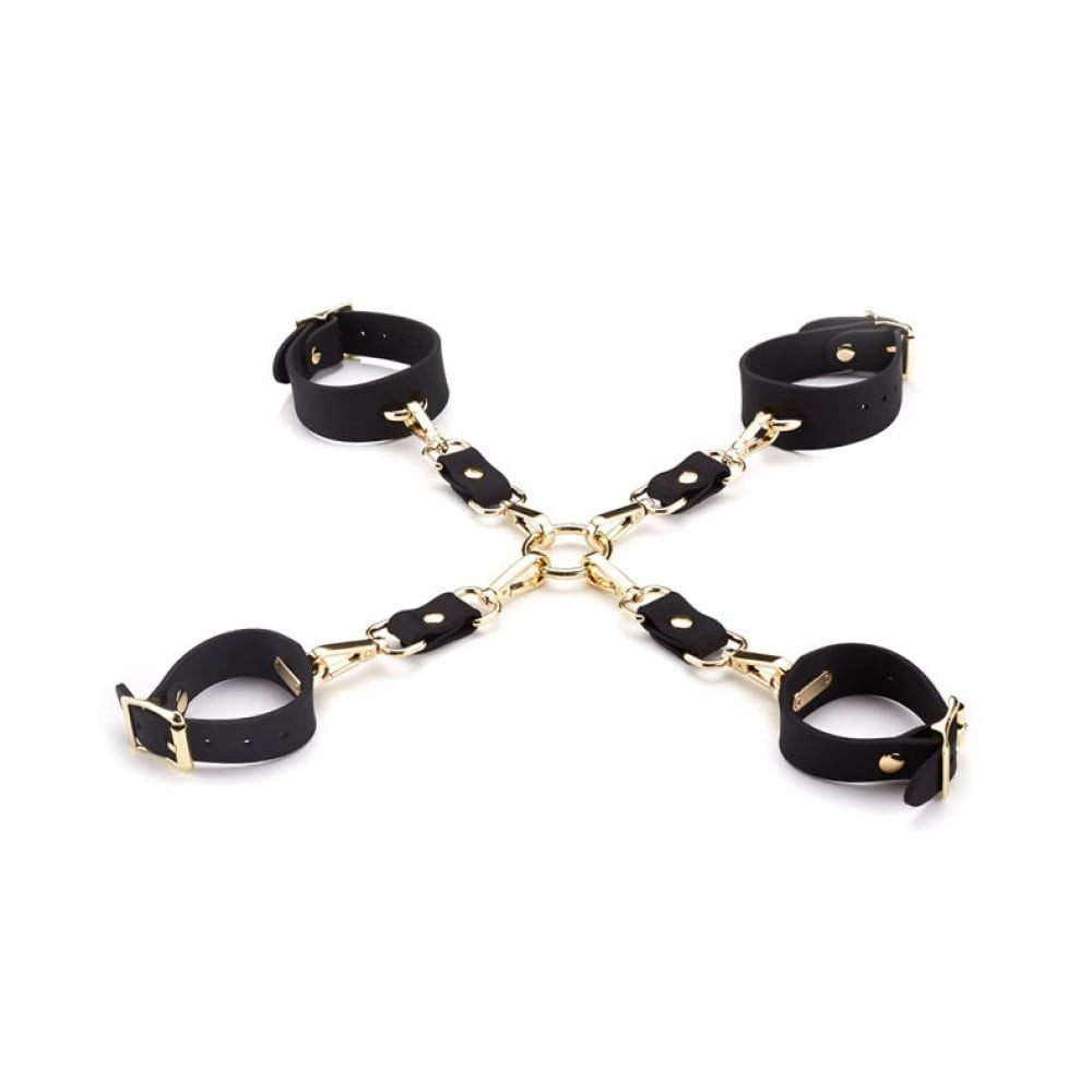 В коробке вы найдете: наручники, поножи, ошейник и цепь к нему и 4 карабина с колечком, которые могут сложиться в крестовину. Доверьтесь своему партнеру и наконец решитесь на ту страсть, которую не знали прежде!