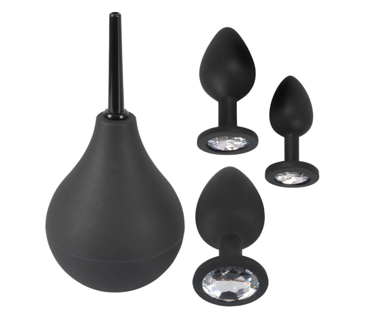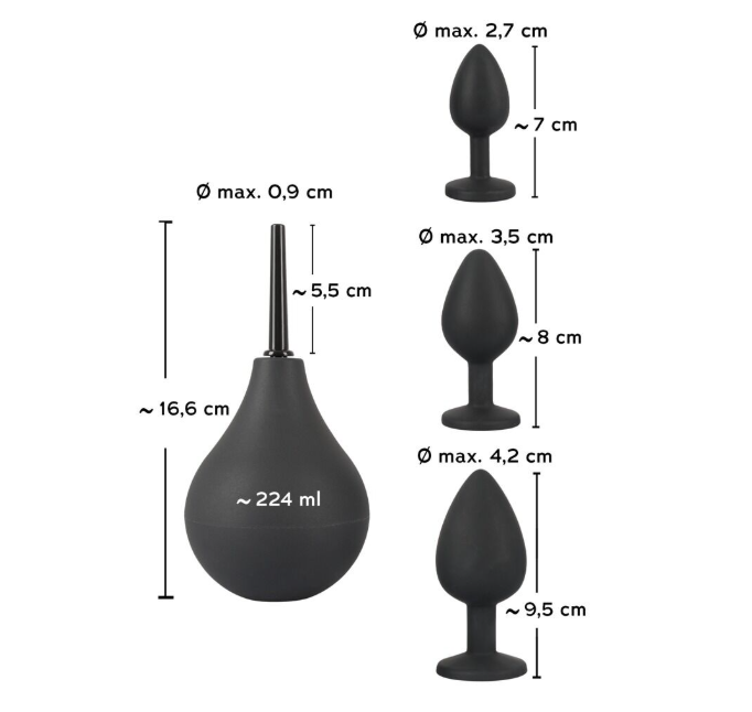 Характеристики Набор для секса анальный душ + 3 анальные пробки черного цвета Black Velvets Anal Kit