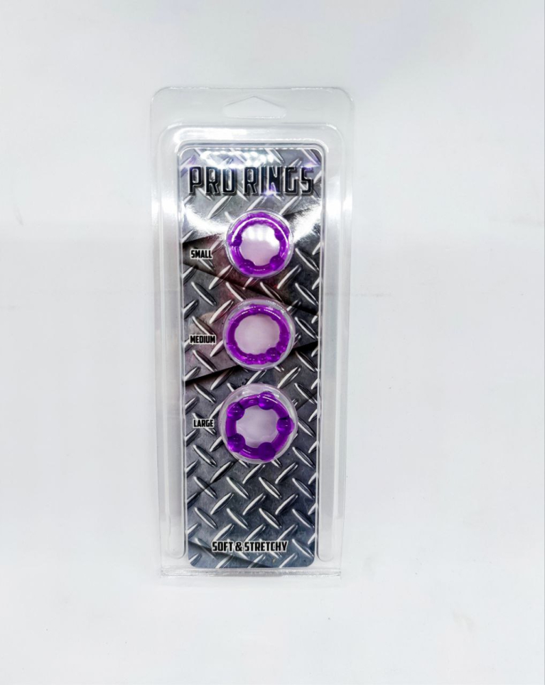 Набор эрекционных колец Ultra Soft & Stretchy Pro Rings Purple. Кольца выполнены из очень мягкого и тянущегося материала, с дополнительными шипиками. Повышает потенцию и продлевает удовольствие.