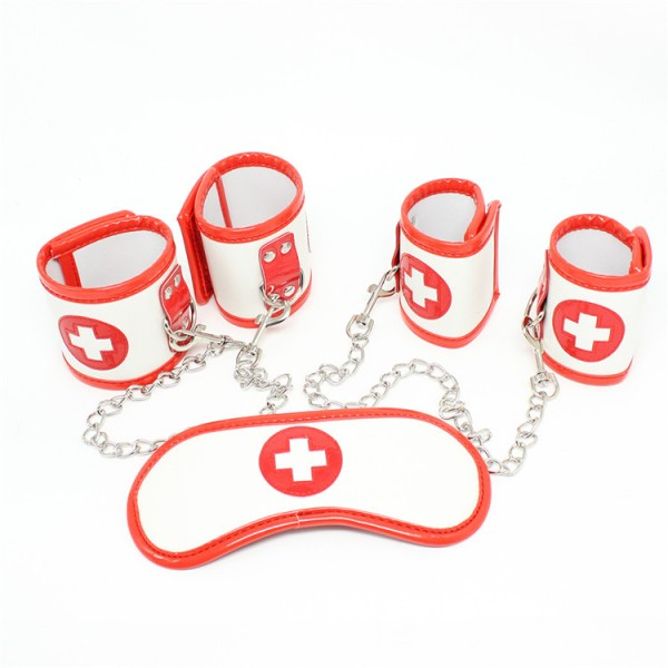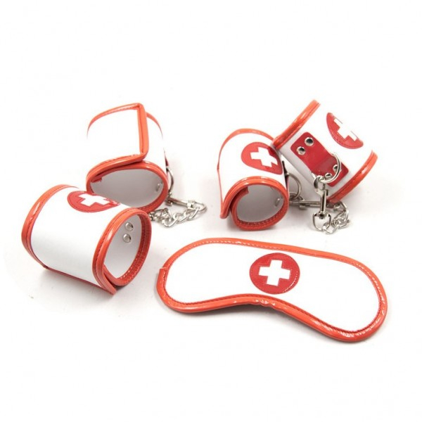 Отличный аксессуар для ролевых игр!Фиксаторы для рук и ног в виде мягких манжет на металлических цепочках. Идеальное дополнение к сексуальному образу медсестры.Отличный аксессуар для ролевых игр!Фиксаторы для рук и ног в виде мягких манжет на металлических цепочках. Идеальное дополнение к сексуальному образу медсестры.Манжеты выполнены из мягкого материала белого цвета, на которых нарисованы традиционные красные кресты.Наручи и поножи соединяются между собой металлической цепочкой. Они туго застегиваются с помощью липучек, которые позволяют легко регулировать их размер.В комплекте с фиксаторами есть маска такого же типа, которая сделает ваш вечер еще интереснее.