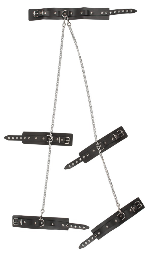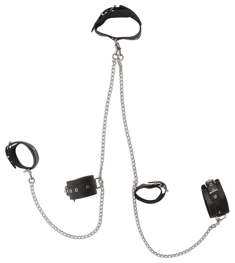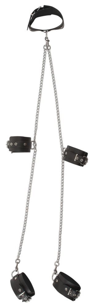 2 металлические соединительные цепи с карабинами на обоих концах Характеристики: Материал — кожа Цвет — черный Упаковка — коробка