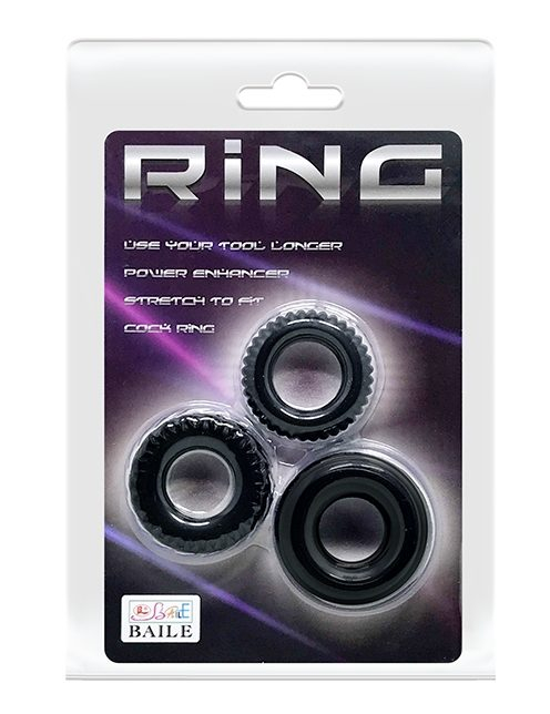 Набор из 3 силиконовых колец черного цвета различного диаметра и формы. Эластичные, легко растягиваются до необходимого размера.