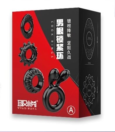 Характеристики Набор из 4 эрекционных колец черный STAY HARD