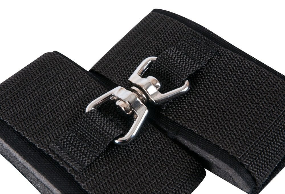 Сет включает в себя пару мягких тканевых наручников, скрепленных поворотным металлическим замком с застежкой на липучке, а также удобную глухую полумаску с эластичным ремешком.
