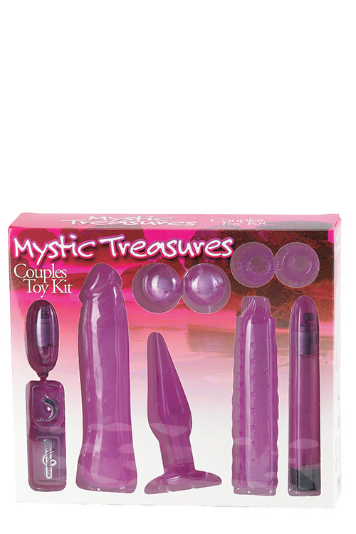 Набор включает в себя: вагинальные шарики, многоскоростная вибропуля, 2 насадки различной формы, плаг и многоскоростной вибромассажер.