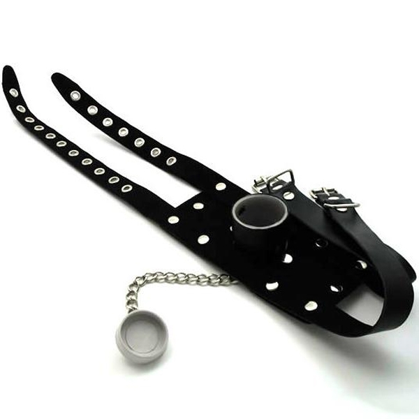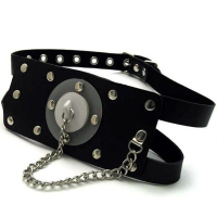 Современный качественный намордник для рта с металическим круглым кляпом. Регулируемый ремень с металическими паетками.