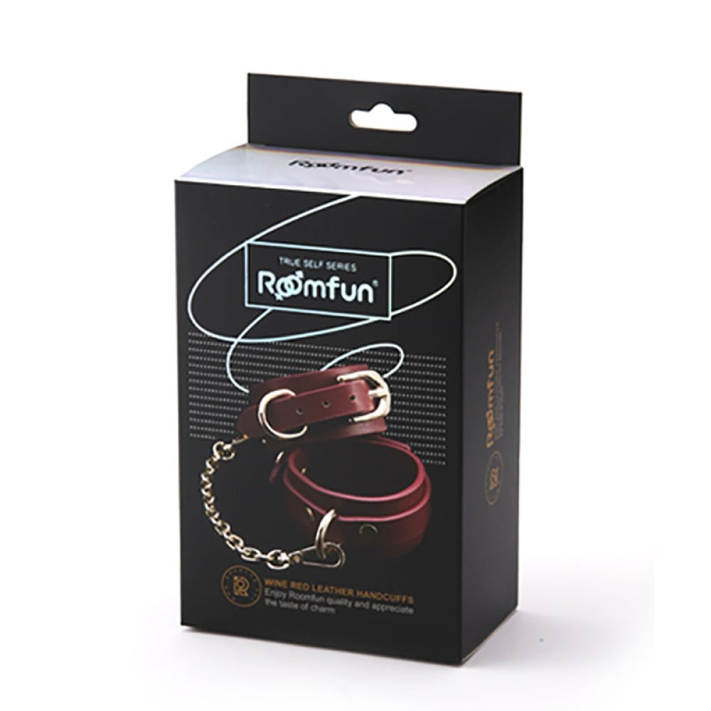 Наручники из экокожи бордовые Romfun Handcuff с золотистой фурнитурой