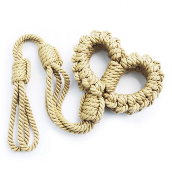 Характеристики Наручники с поводком из плетеной веревки желтые Bdsm4u