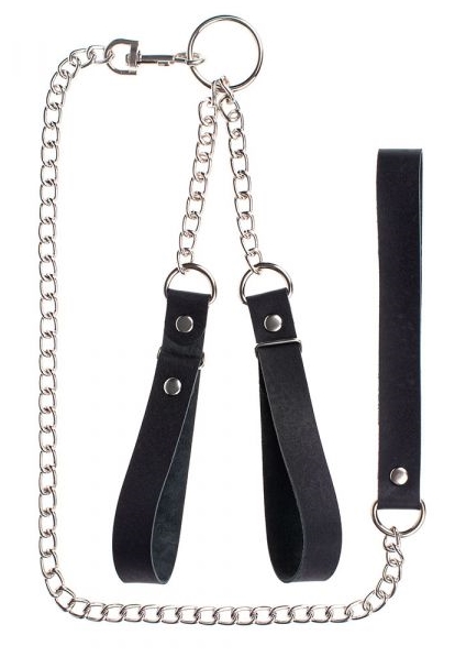 Наручники с поводком Gentle Hold —  изящный аксессуар из кожанных ремней и металлической цепочки