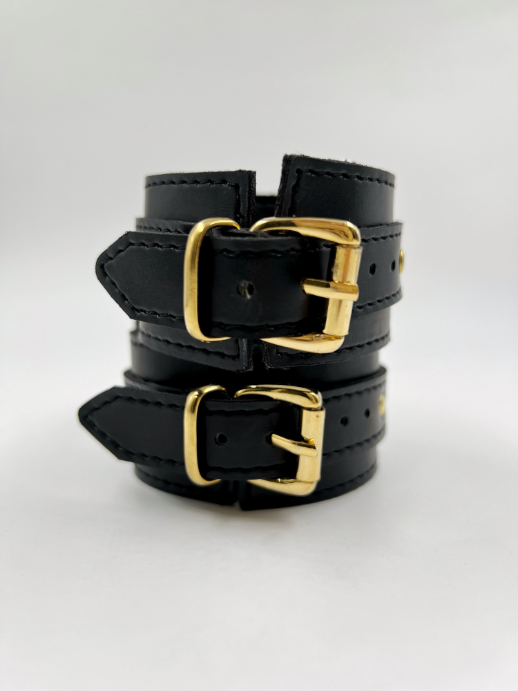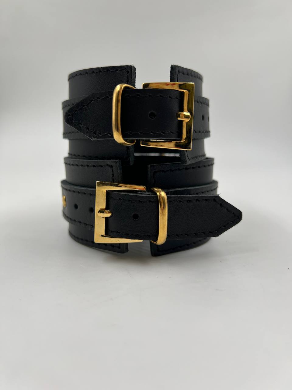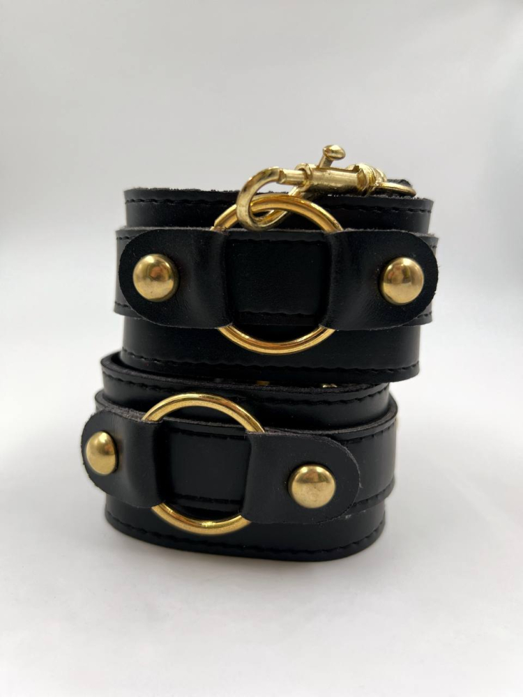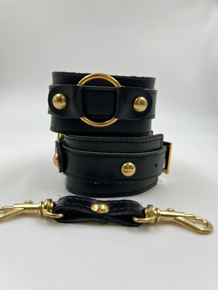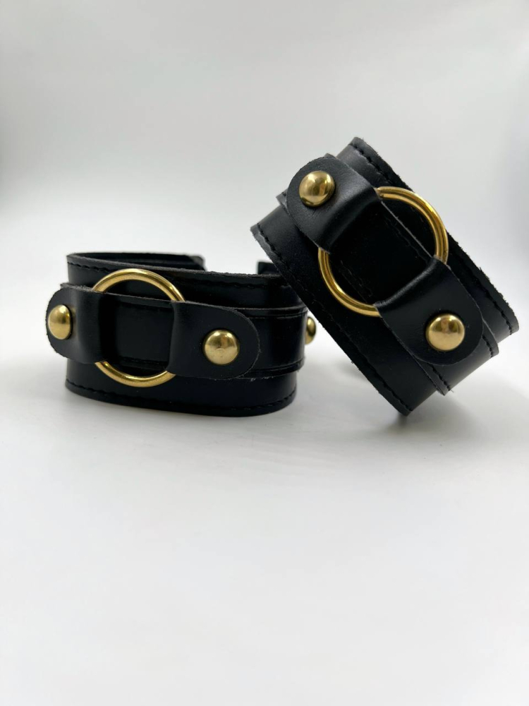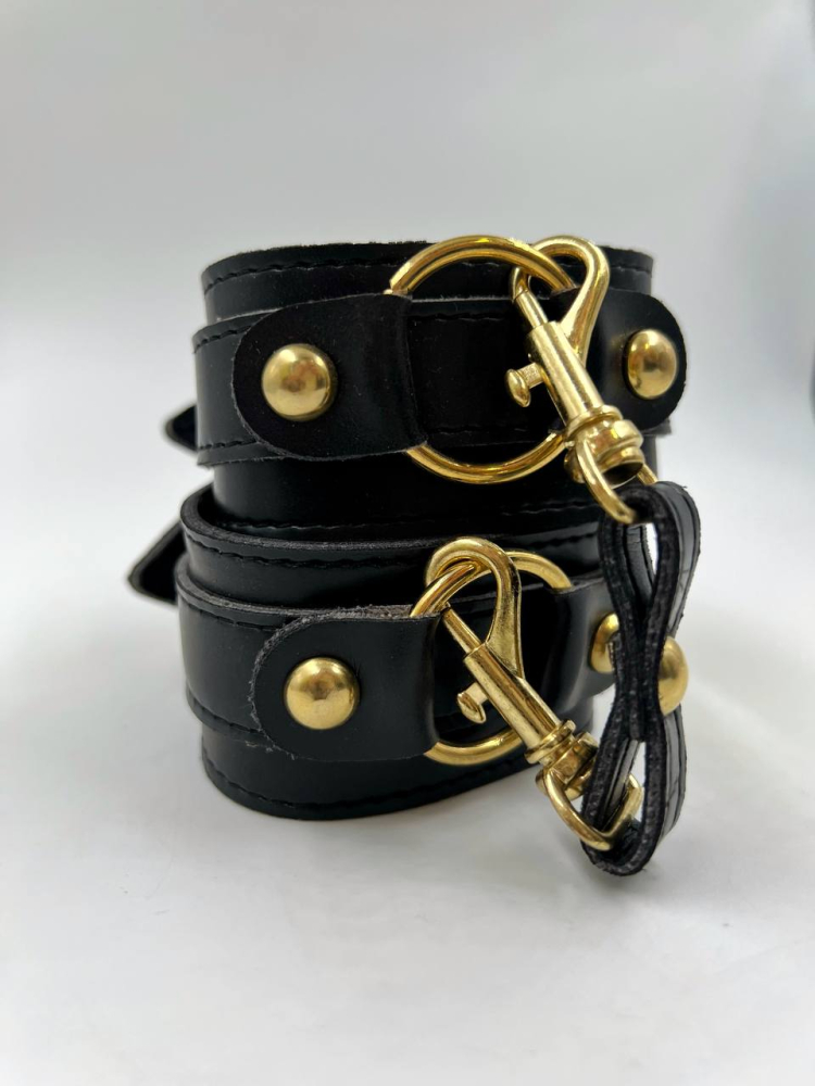 Наручники с золотистыми заклепками БДСМ из искусственной кожи черного цвета Scappa модель НС3Е