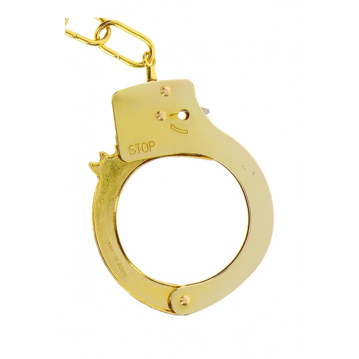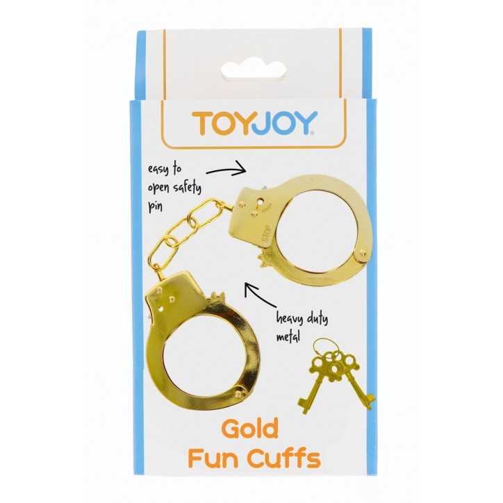 Наручники Toy Joy из золотистого металла регулируются и снабжены предохранительной защелкой.