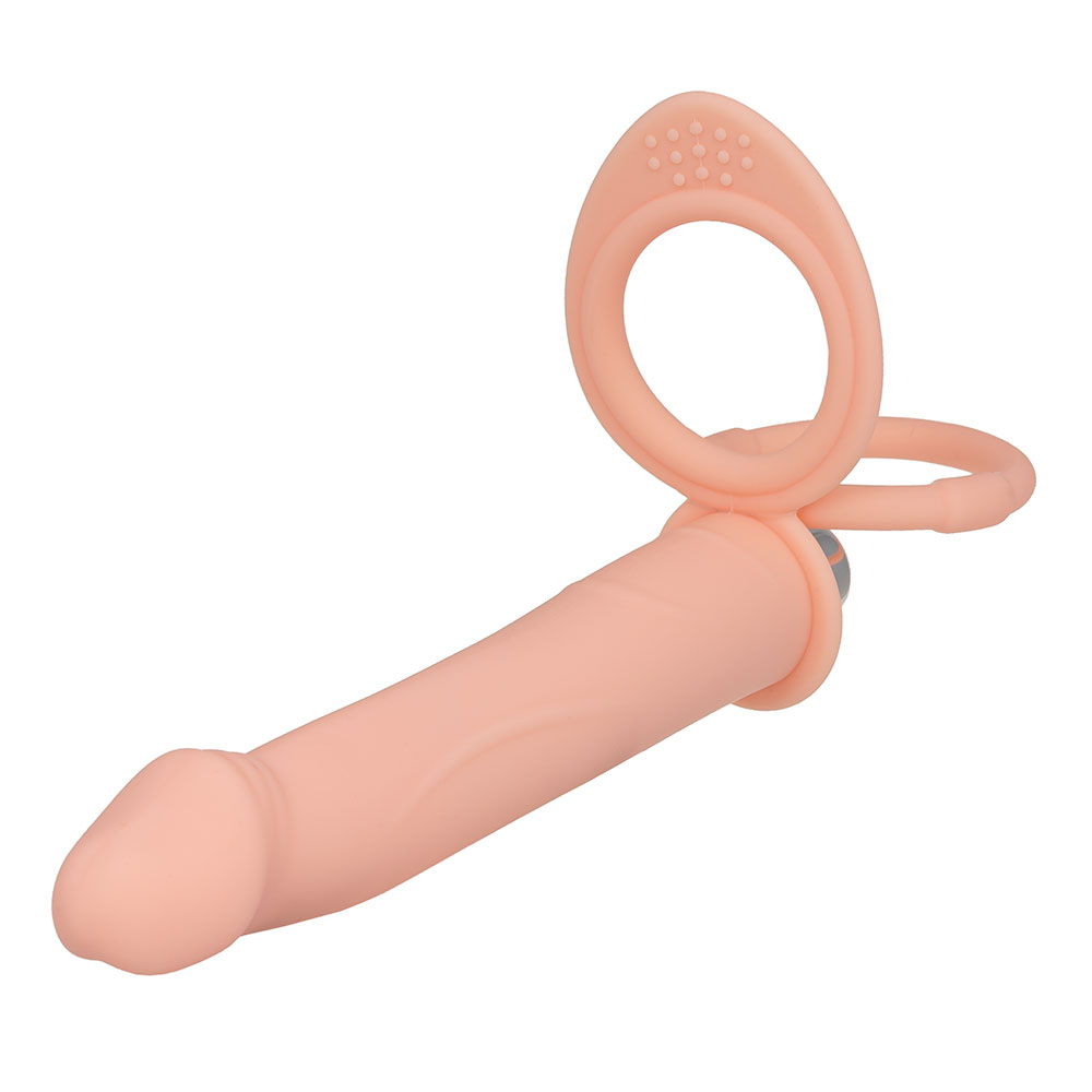Насадка на половой член с 1о режимами вибрации и 2-мя эрекционными кольцами позволит испытать Вашей партнерше яркие ощущения от двойного проникновения без посторонних лиц в Вашей спальне!
