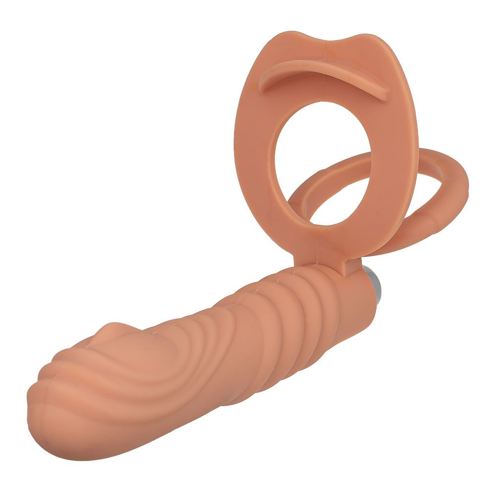 Насадка на член для двойного проникновения с вибрацией и креплением к пенису и мошонке XESE PS06V10