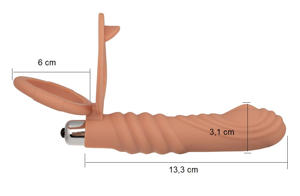 Характеристики Насадка на член для двойного проникновения с вибрацией и креплением к пенису и мошонке XESE PS06V10