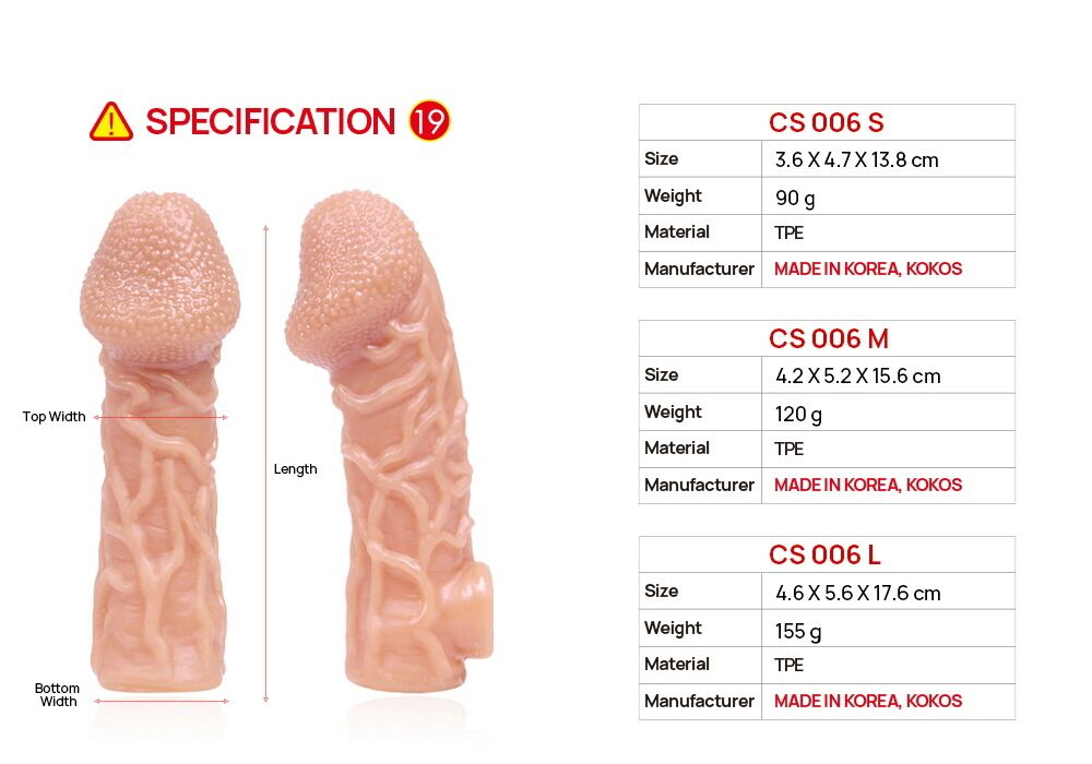 Характеристики Насадка на член с отверстием для мошонки и венами телесного цвета Kokos Cock Sleeve CS 006 размер M