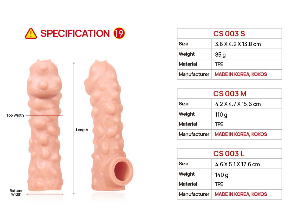 Характеристики Насадка на член с отверстием для мошонки телесного цвета Kokos Cock Sleeve CS 003 размер M