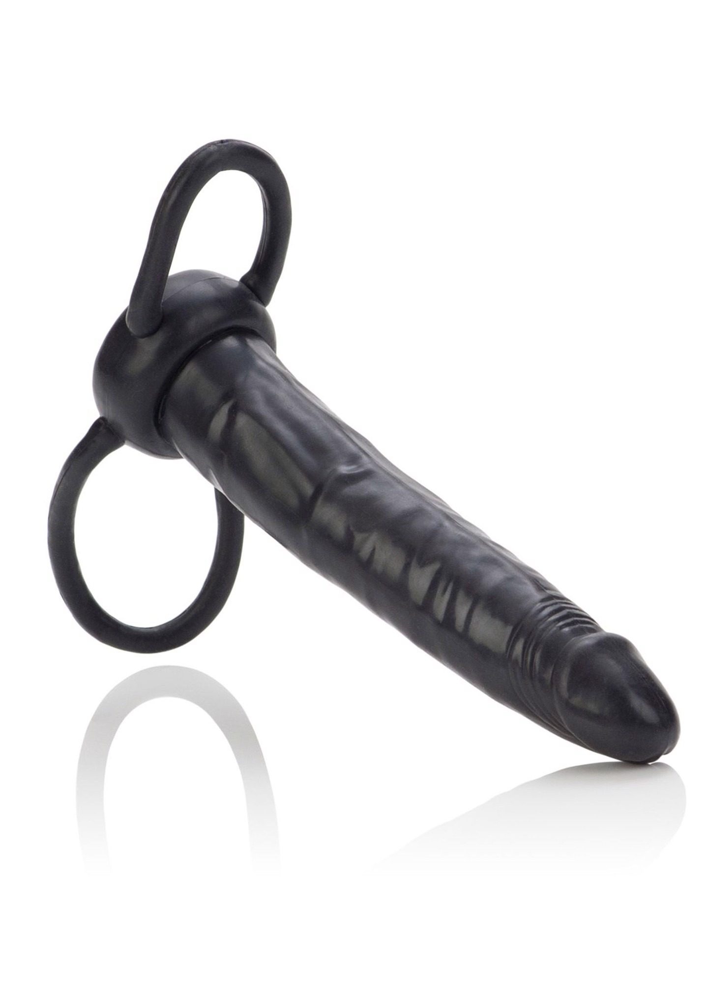 Насадка на реалистичная член с петлей на мошонку CalExotics, для двойного проникновения, черный
