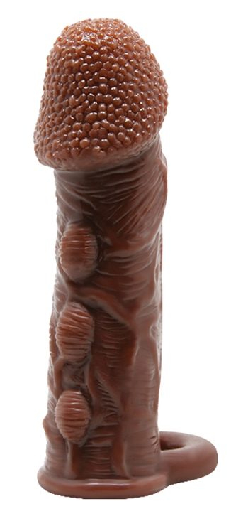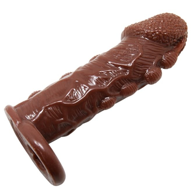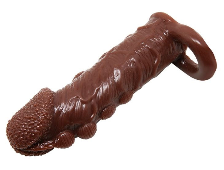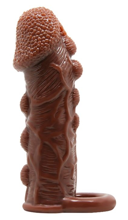 Насадка реалистичная на член с кольцом и крупными пупырышками коричневого цвета LYBAILE Brave Man BI-016012