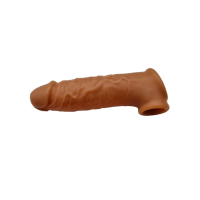 Насадка реалистичная с двойной петлей для мошонки и члена коричневого цвета Top-Notch