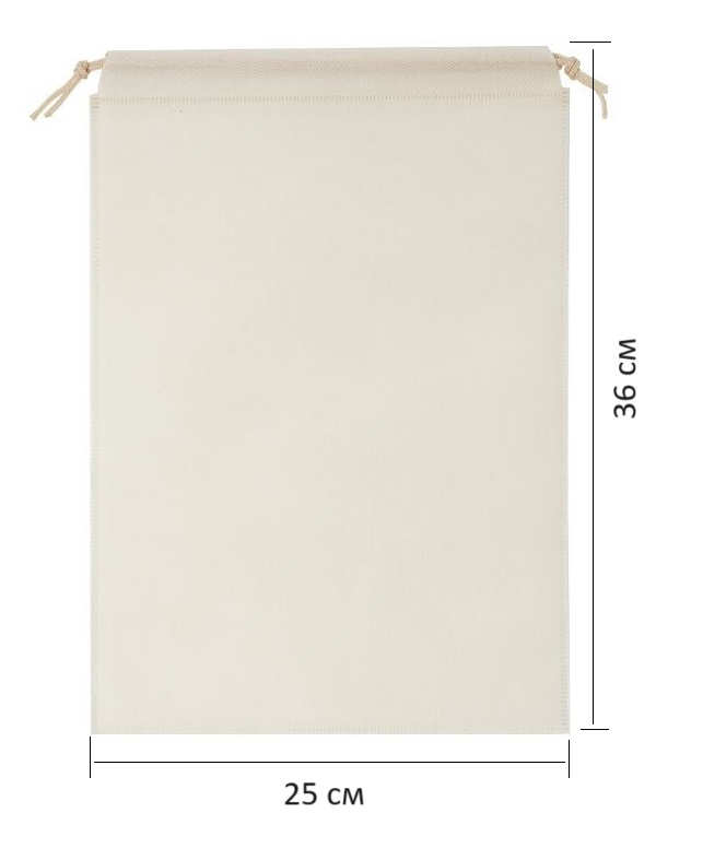 Нетканный мешочек для хранения интимных игрушек, бежевый, 36 см х 25 смДлина - 36 см.Ширина - 25 см.Материал - спанбонд.