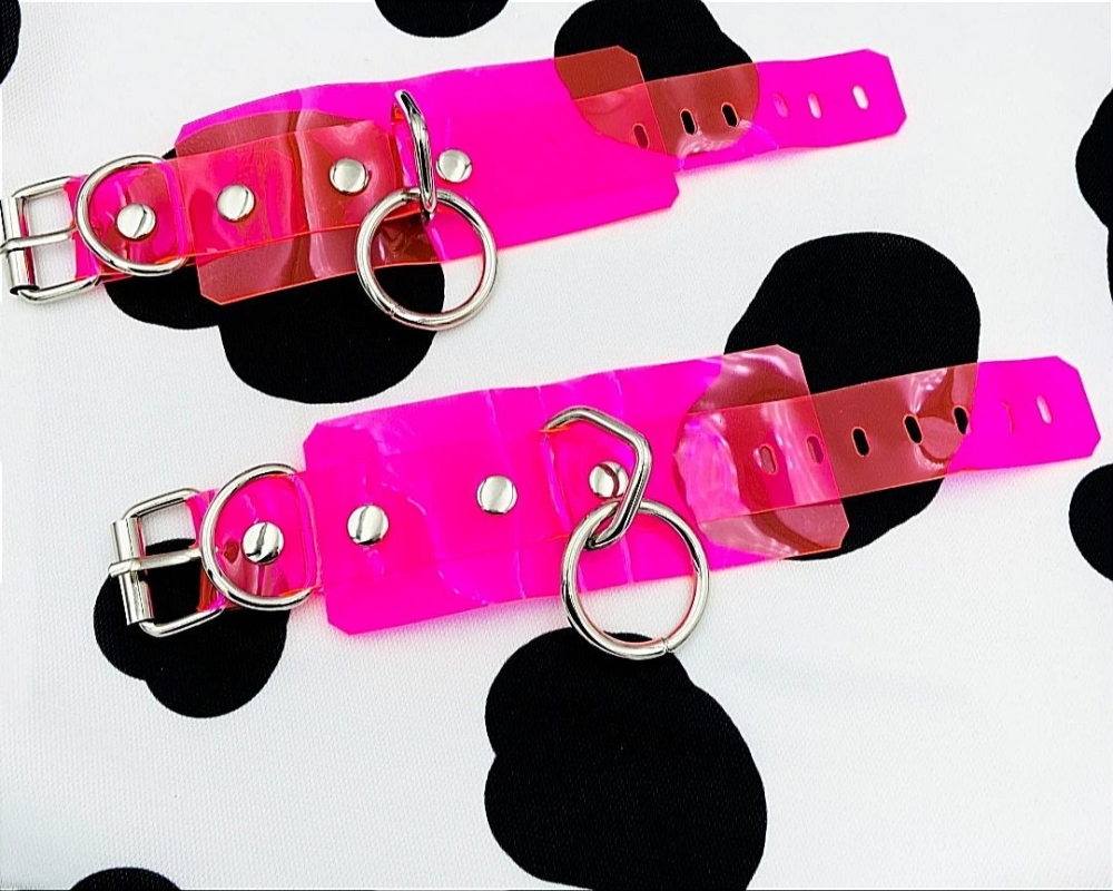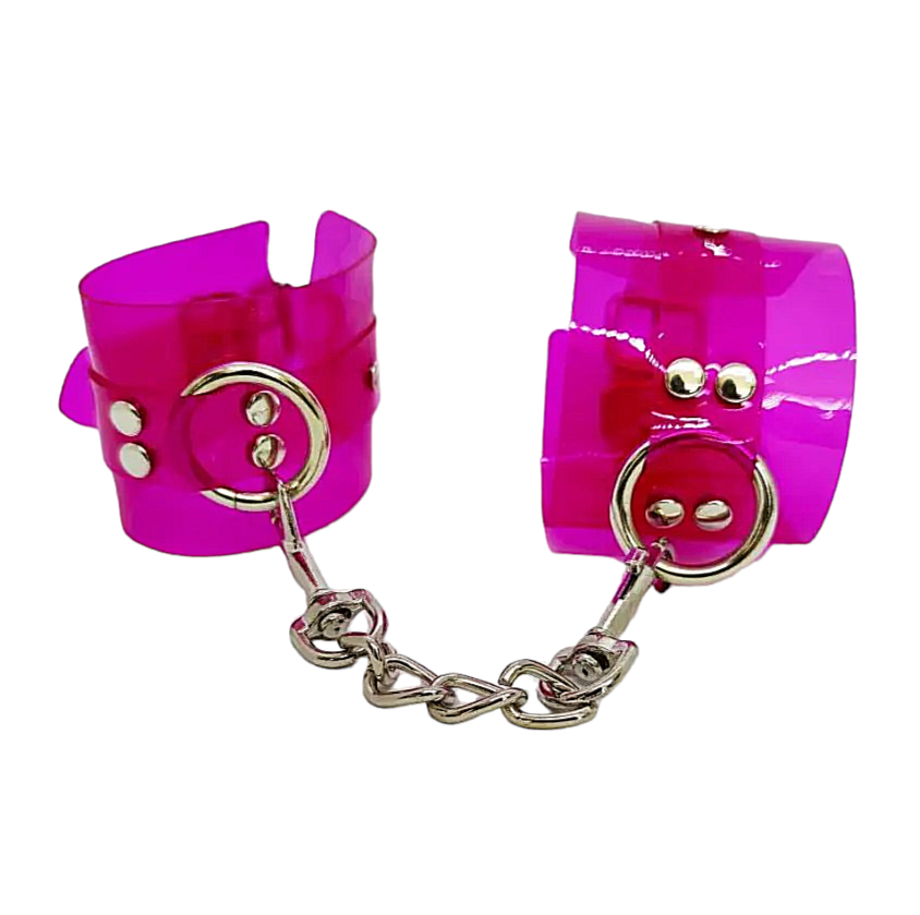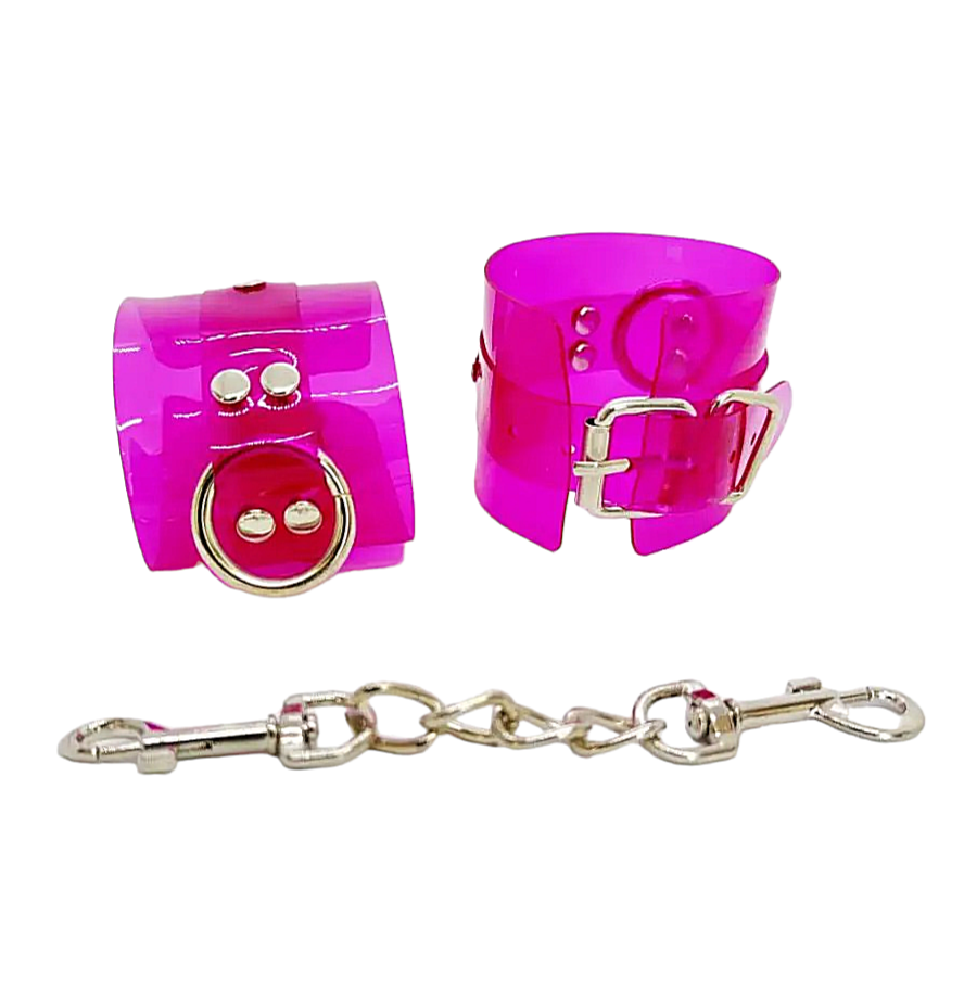 Наручники DS Fetish Handcuffs transparent purple — приятные, функциональные и простые в использовании. Есть два браслета на крепких замочках, которые можно как соединить между собой карабинами, так и разъединить, или закрепить карабины на соответствующей цепочке и т.д.
