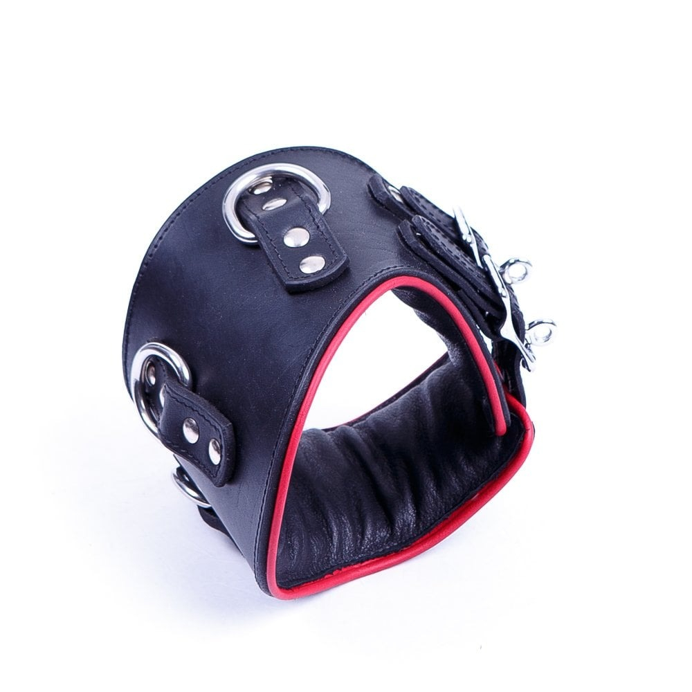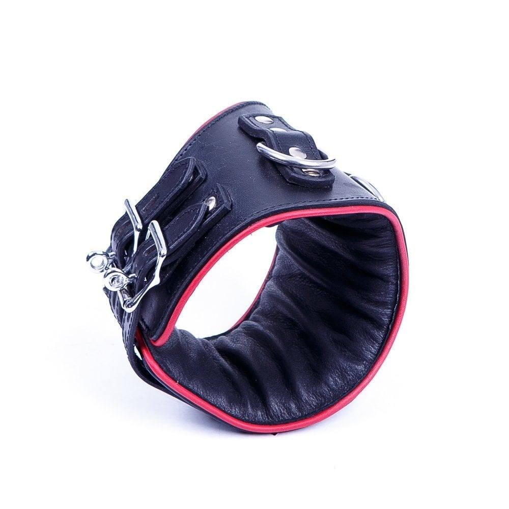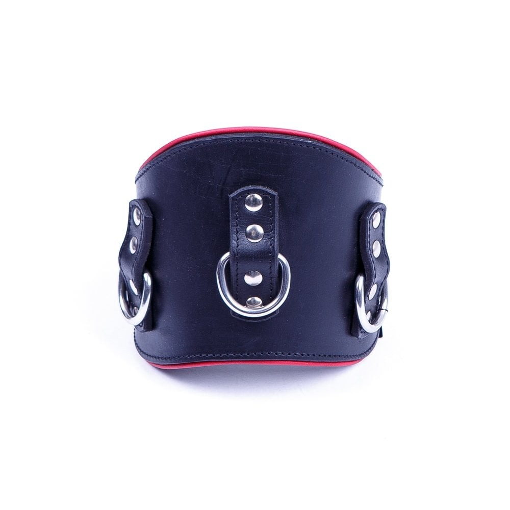 Ошейник анатомический с 3-мя кольцами DS Fetish черный с красной строчкой (Голландия)