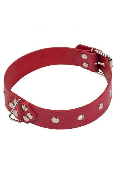 Красный ошейник из мягкой кожи самого высокого качества. Создайте роскошный и чувственный образ при помощи такого стильного аксессуара. Ошейник украшен металлическими заклёпками и имеет удобное крепление для лёгкого присоединения поводка. Идеально сочетается с наручниками и оковами для ног из этой серии.
