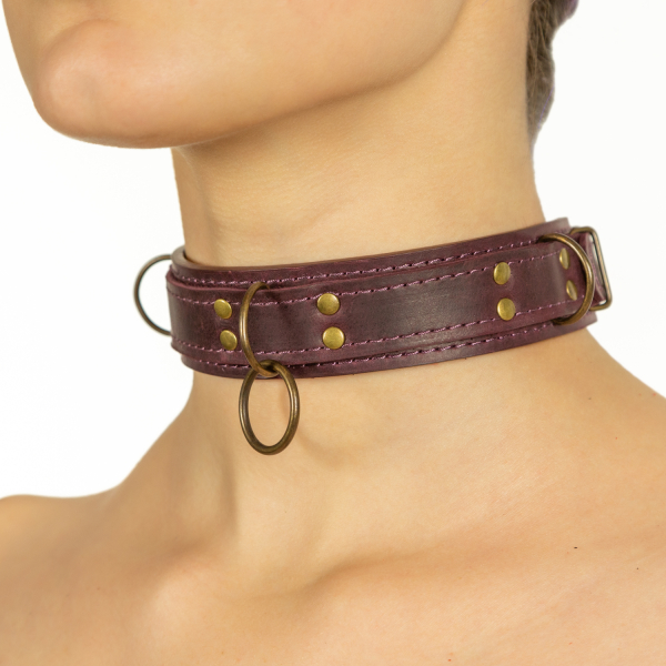 Фиолетовый ошейник LOVECRAFT с полукольцами и кольцом на центральной части, для крепления поводка для ошейника, карабинов или веревки для шибари: