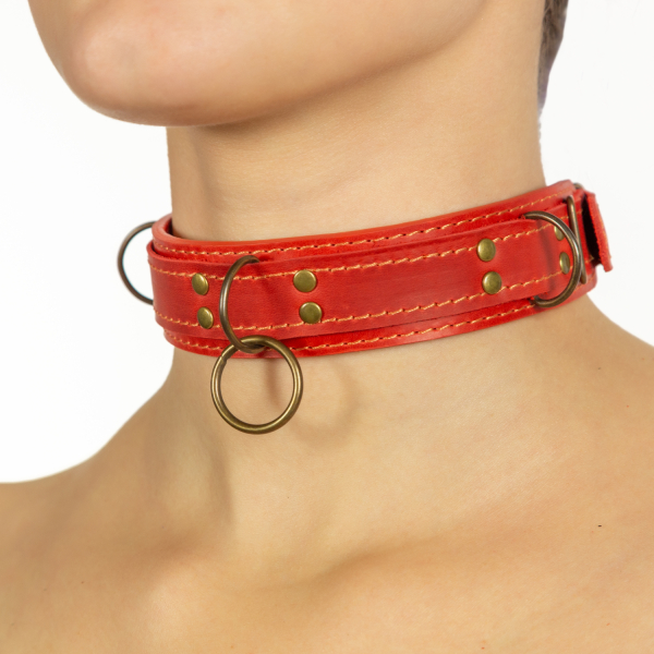 Красный ошейник LOVECRAFT с полукольцами и кольцом на центральной части, для крепления поводка для ошейника, карабинов или веревки для шибари: