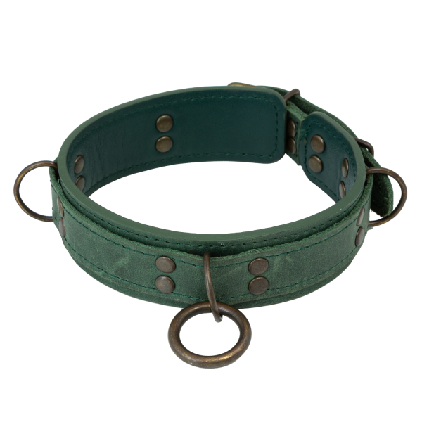 Зелёный ошейник LOVECRAFT с полукольцами и кольцом на центральной части, для крепления поводка для ошейника, карабинов или веревки для шибари: