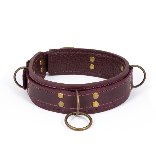 Фиолетовый ошейник LOVECRAFT с полукольцами и кольцом на центральной части, для крепления поводка для ошейника, карабинов или веревки для шибари:
