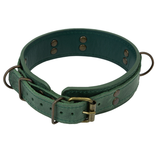 Зелёный ошейник LOVECRAFT с полукольцами и кольцом на центральной части, для крепления поводка для ошейника, карабинов или веревки для шибари:
