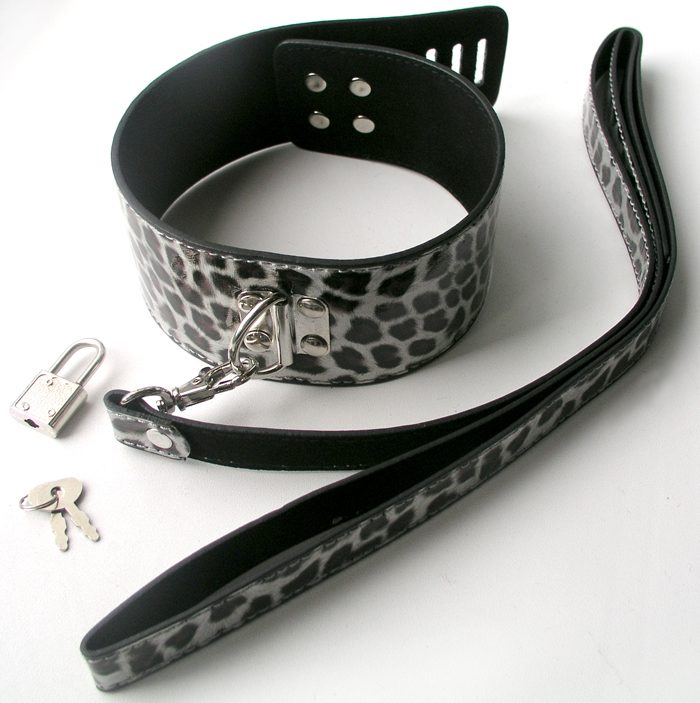 Ошейник для человека с поводком серебряный леопард кожаный Notabu
