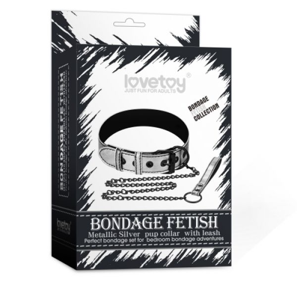 Ошейник Фетиш серый металик с поводком для БДСМ Lovetoy IXI57744
