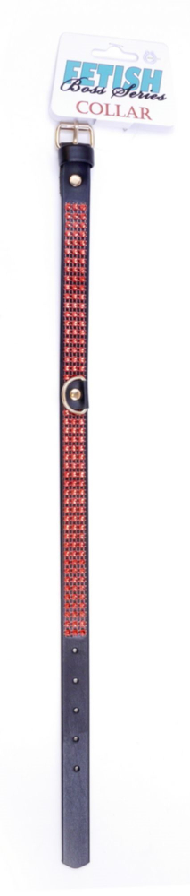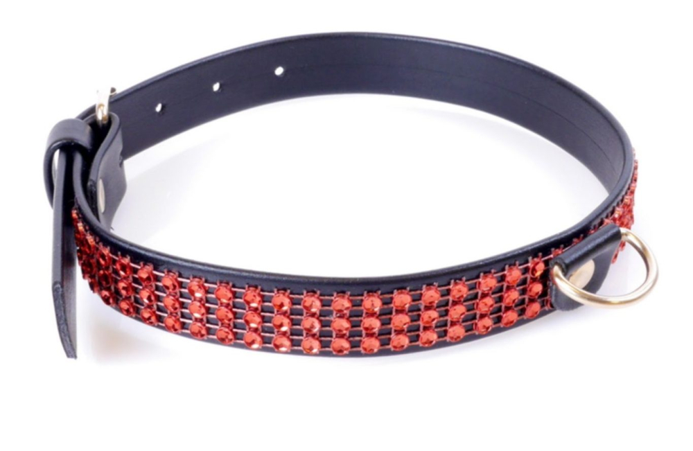 Эксклюзивный ошейник со стразами красного цвета, выполнен из прочной экологической кожи, нежной на ощупь, что делает его удобным в носке.